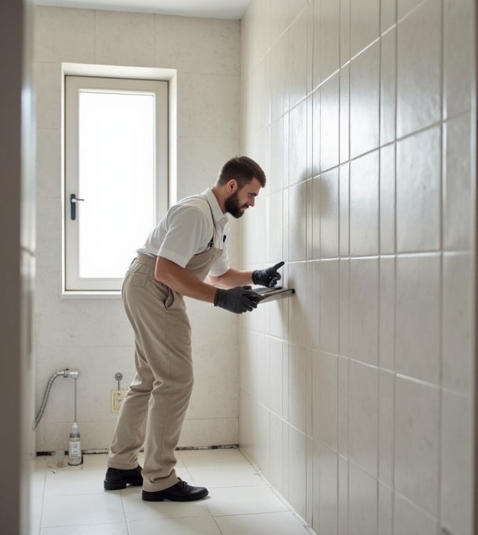 تركيب البلاط الجديد فوق القديم في الحمامات ليس الحل الأمثل. المشكلة أن الرطوبة العالية في هذه الأماكن تسبب مشاكل حقيقية — قد تحدث تسربات مائية وتتضرر طبقات العزل. الطريقة الصحيحة هي إزالة البلاط القديم أولاً (50 درهم/م²)، ثم وضع طبقة عزل جديدة وتركيب بلاط حديث.